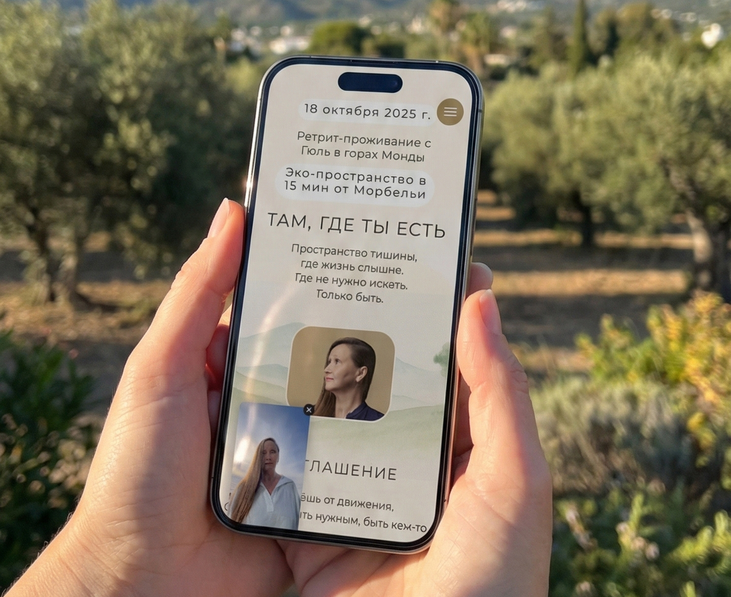 — Создан отдельный лендинг ретрита в Испании: структура, визуальная концепция, оформление программы и блоков продаж.