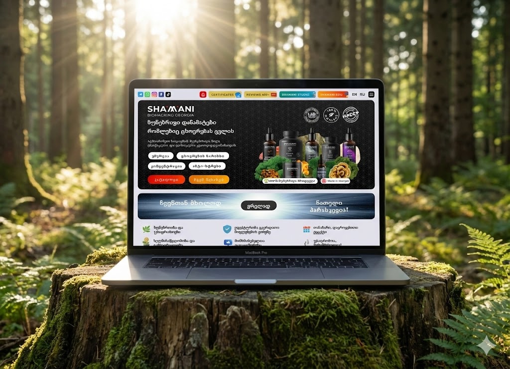 SHAMANI — комплексный проект EVO BRAND: от идеи и позиционирования до вывода на рынок, экосистемы и устойчивой лидирующей позиции. Мы разработали стратегию, продукт, визуальную систему, сайт, маркетинг и помогли бренду стать доминантом сегмента в Грузии.