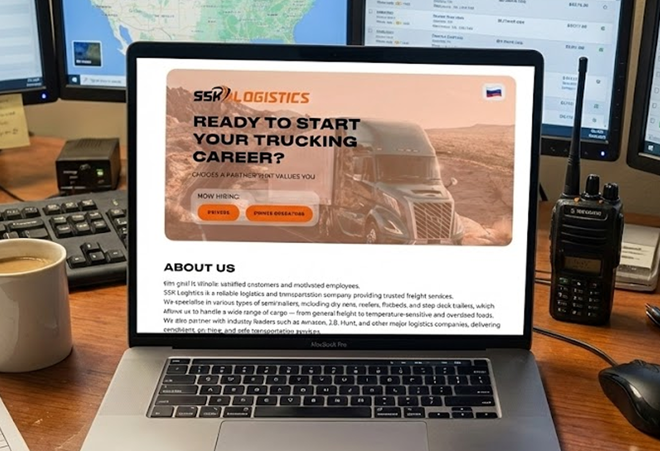 SSK Logistics — компания грузовых перевозок в США. Основатель обратился в EVO BRAND с задачей выстроить узнаваемый визуальный стиль и создать эффективную систему привлечения водителей — как на собственный автопарк, так и с личными грузовиками. Мы разработали фирменный стиль, посадочную страницу под вакансии и полностью обновили коммуникации компании.