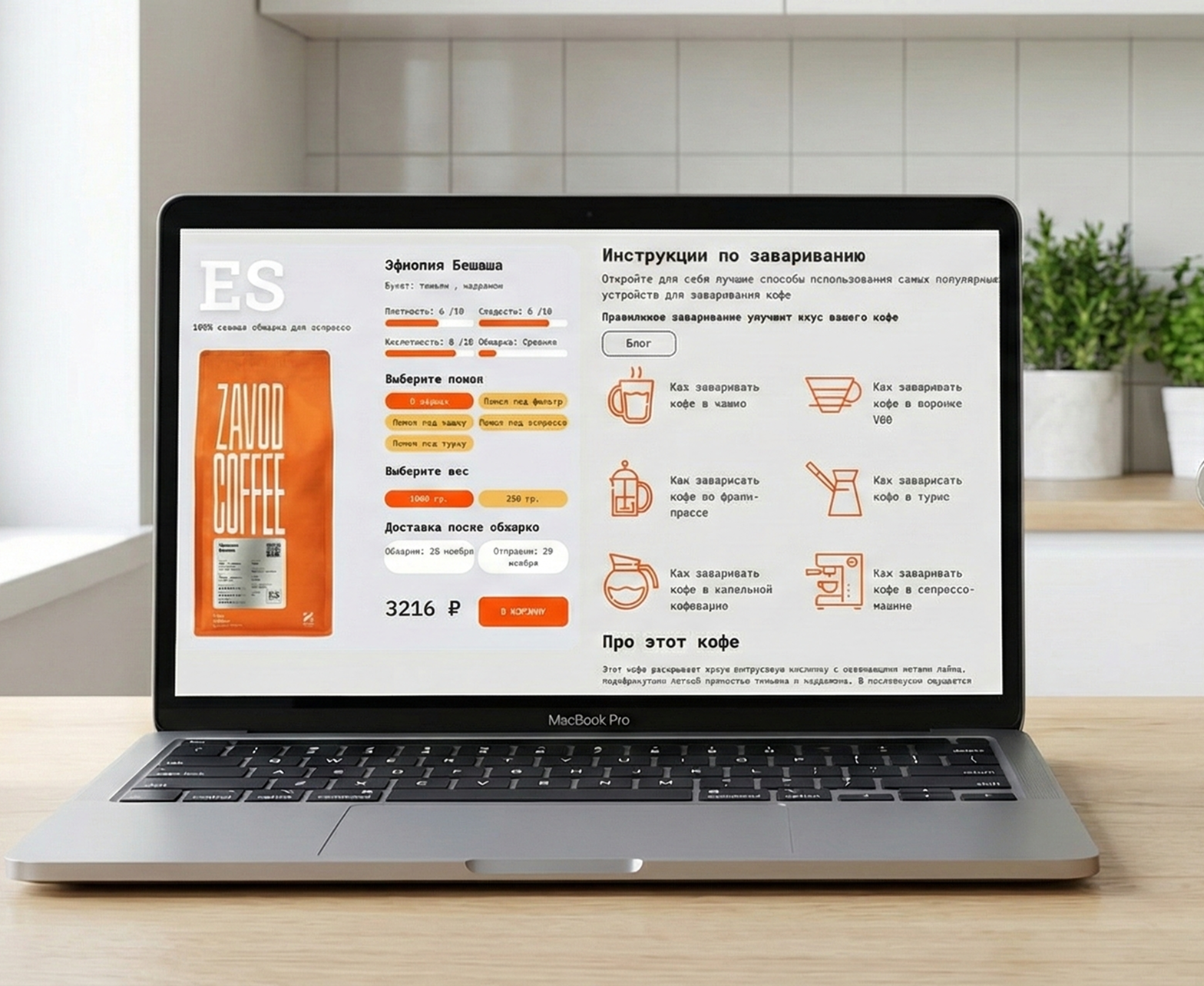 ZAVOD COFFEE, one of the key players in Russia’s specialty roasting market, partnered with EVO BRAND to rebuild its website, redesign the UX/UI and create a clear, intuitive platform for both B2B and B2C customers. The new website supports the brand’s expansion into personalised consumer roasting.